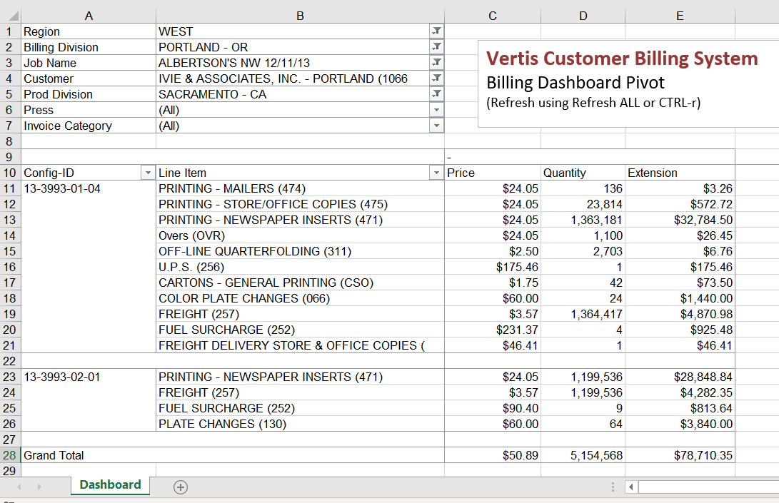 Analysis of billing data in pivot table format