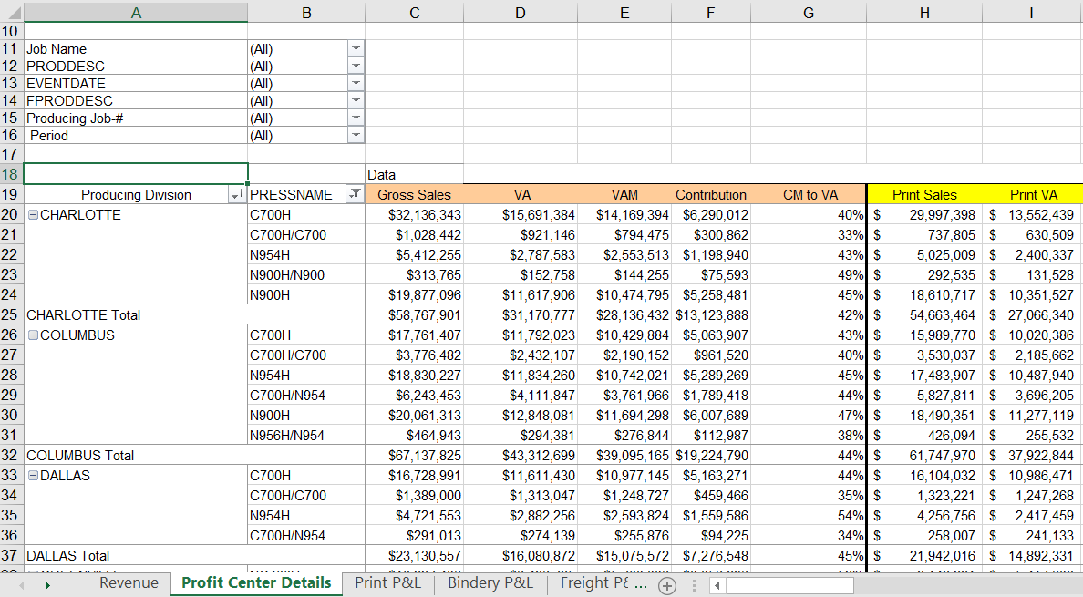 Examples of transaction data converted to Excel pivot tables